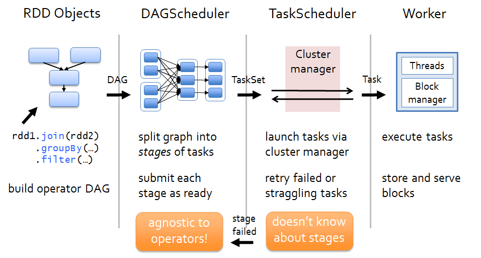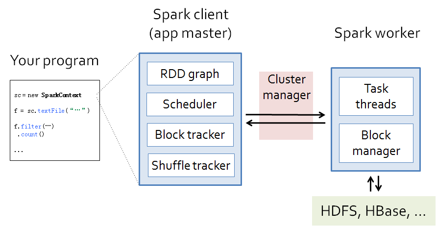 在阅读该论文的基础之上,再结合Spark作者在2012年Developer Meetup上做的演讲Introduction to Spark Internals,那么对与Spark的内部实现上会有一个整体上的了解。